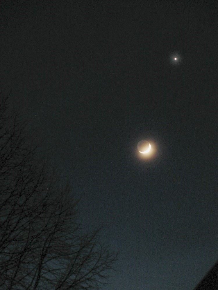 Schöner Anblick am Abendhimmel des 22.03.2015. Die schmale Mondsichel zusammen mit der