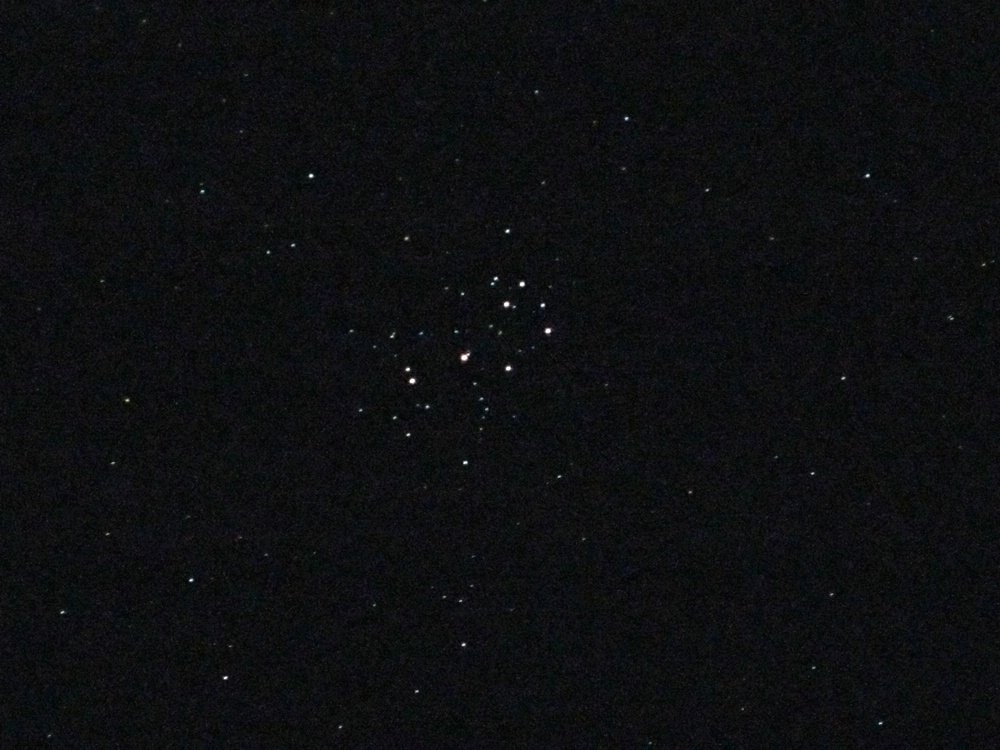 Einzelbild der Plejaden. Mit der Digicam auf dem Stativ etwa 3,5sek. belichtet
